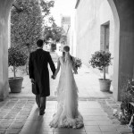 Comenzamos los preparativos…¡vaya locura! El equipo de Jorge Aparisi, en especial Ana y Meli, me asesoraron de maravilla y encontré el vestido de mis sueños junto a mis padres y mi hermana que me acompañaron en cada una de las pruebas. El velo lo tuve claro, al estilo pirata como lo llevó mi bisabuela hace hoy casi un siglo. Antonio Jordán y Vanesa Tapias me ayudaron con la peluquería y el maquillaje, enseguida captaron mi estilo y el resultado fue genial. Lo único que llevé como complementos fueron los pendientes que me regalaron mis abuelos cuando acabé la ingeniería y el anillo de pedida. Kevin iba guapísimo, con chaqué, chaleco color crema y corbatón azul, a juego con sus preciosos ojos.